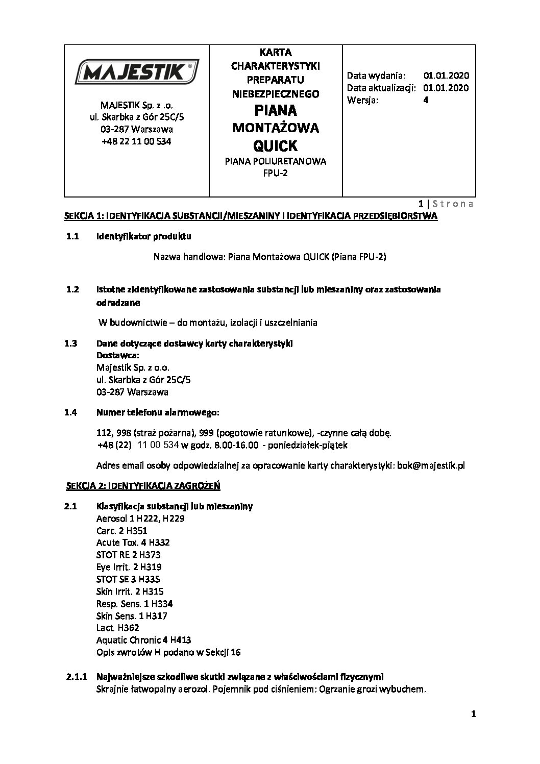 Nasza pianka poliuretanowa niskoprężna to produkt przeznaczony dla osób poszukujących trwałych spoin. Uszczelnia, izoluje, nadaje się do wypełnień w sufitach, deskach podłogowych, ścianach betonowych, w złączeniach rur, obszarach wodno-kanalizacyjnych. Wszystkie te funkcje zapewnia użycie niskoprężnej pianki poliuretanowej. Produkt daje efekty na długie lata! Jest wodoodporny, można go bez problemu malować i używać niezależnie od łączonych z jego pomocą materiałów. Zachęcamy do zapoznania się z całą ofertą MAJESTIK. W razie pytań zapraszamy do kontaktu.